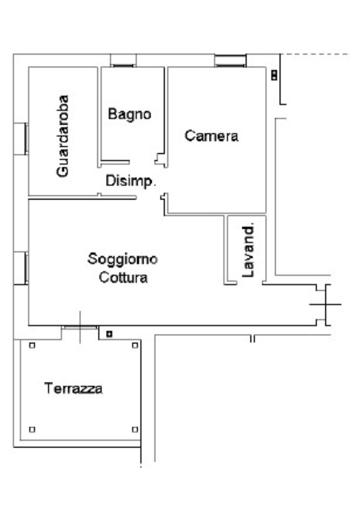 L'immobile è composto da ingresso, soggiorno con angolo cottura con accesso al terrazzo abitabile di circa 14 mq. La zona notte comprende una camera matrimoniale, una cameretta/guardaroba e un bagno finestrato dotato di vasca.