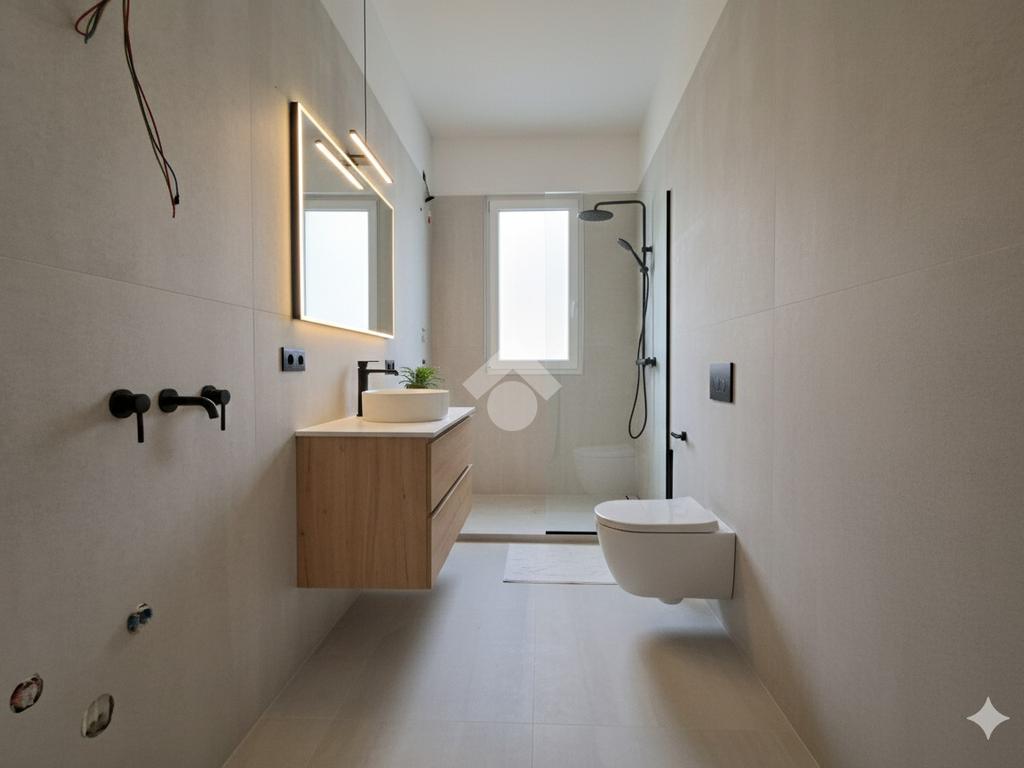Inoltre l'impianto elettrico (BTicino living now) è indipendente per ogni singola stanza, offrendo il massimo della versatilità e della gestione energetica. La pavimentazione in legno, di qualità superiore, dona calore e eleganza a tutti gli spazi.