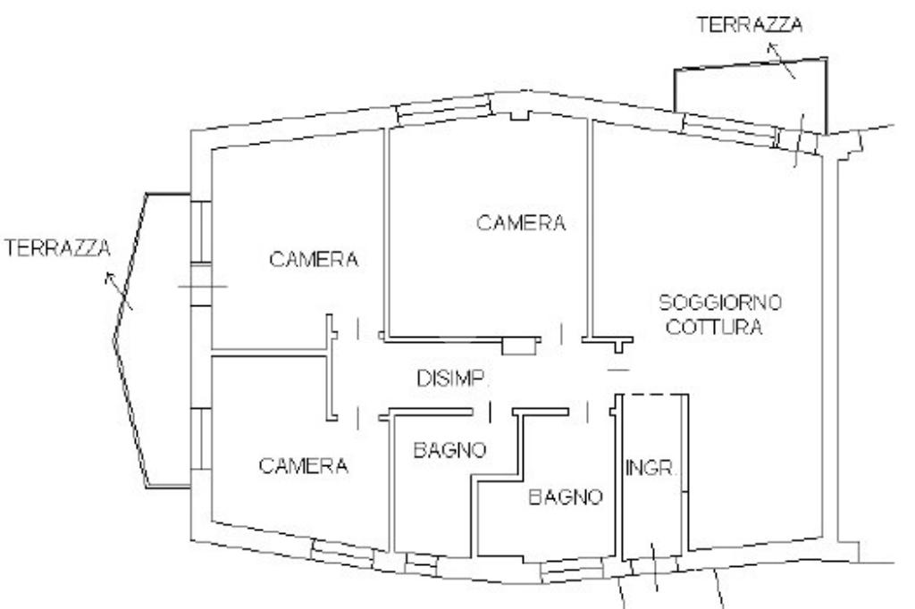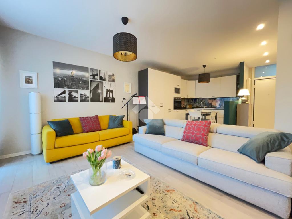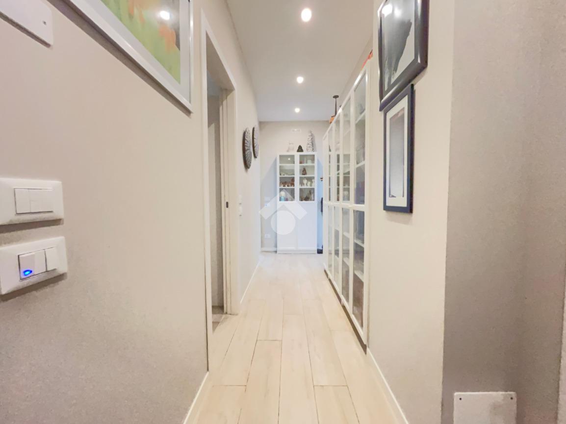 L'immobile si apre su un ingresso che conduce alla zona giorno, caratterizzata da un ampio open space con soggiorno e cucina, arricchita da arredi su misura e con accesso diretto al primo terrazzo. La zona notte include una camera matrimoniale, una camera singola, una camera doppia, due bagni entrambi finestrati e un ulteriore terrazzo.