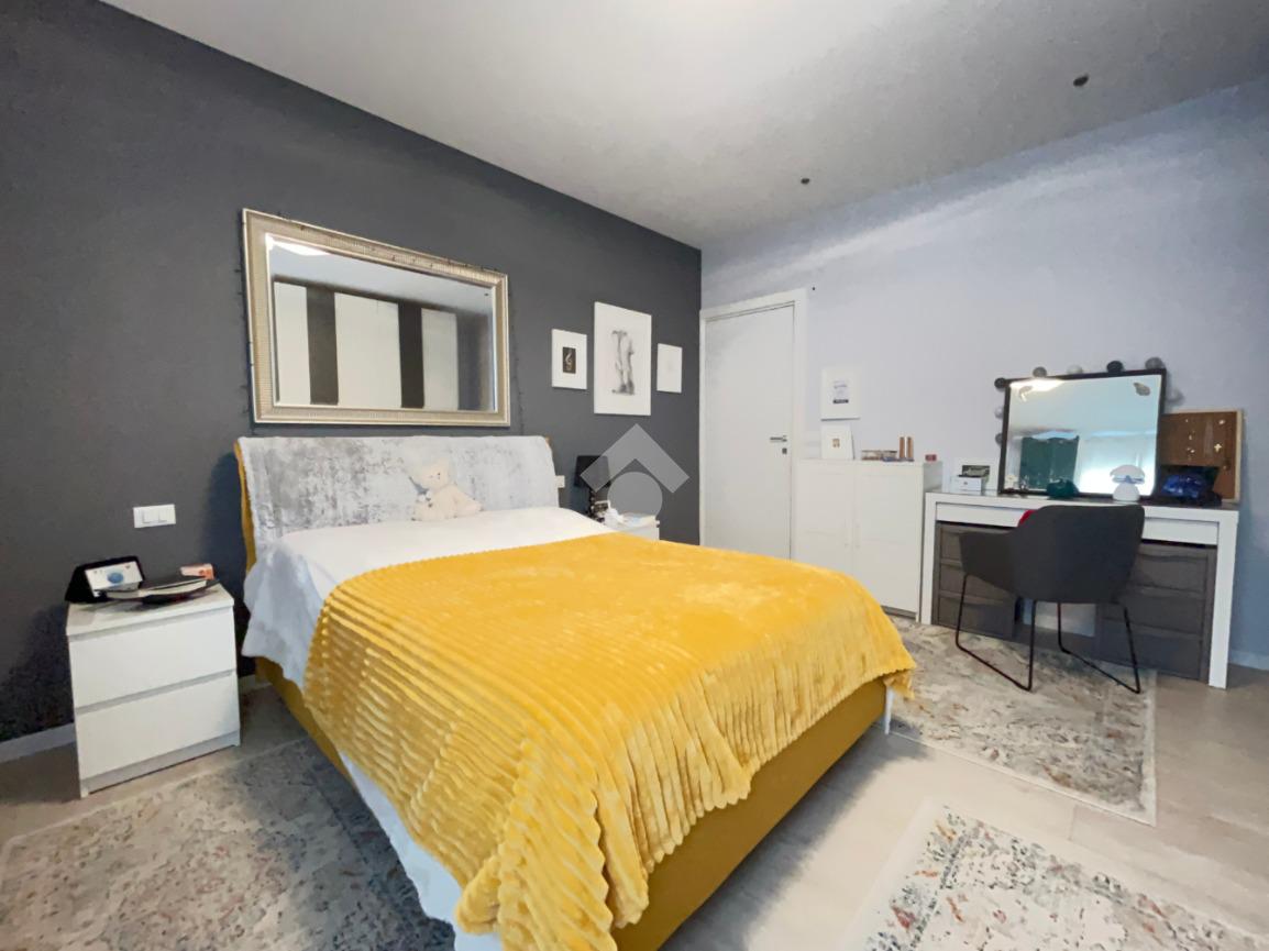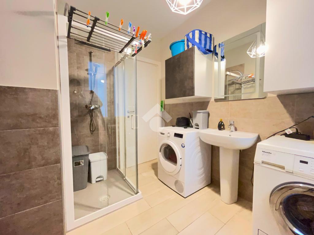 La pavimentazione in gres effetto legno è presente su tutta la superficie, mentre le finiture, moderne e curate, si presentano in ottimo stato.