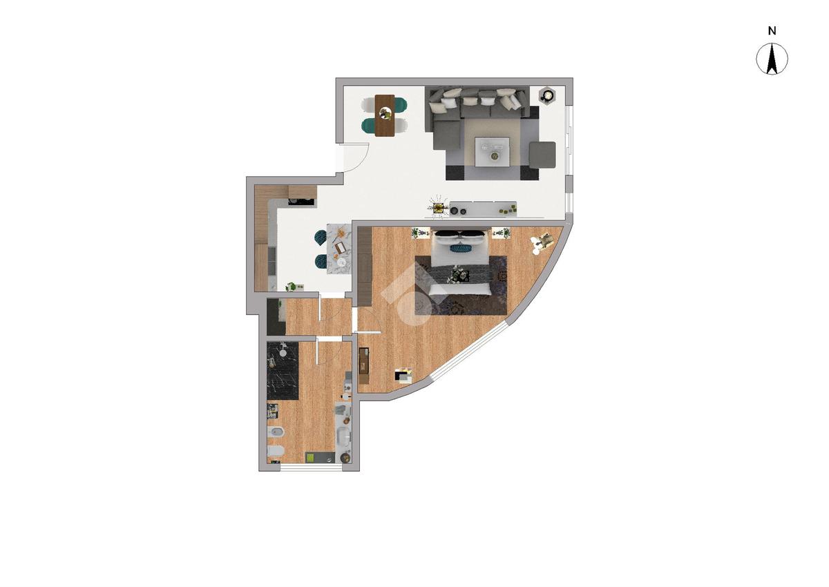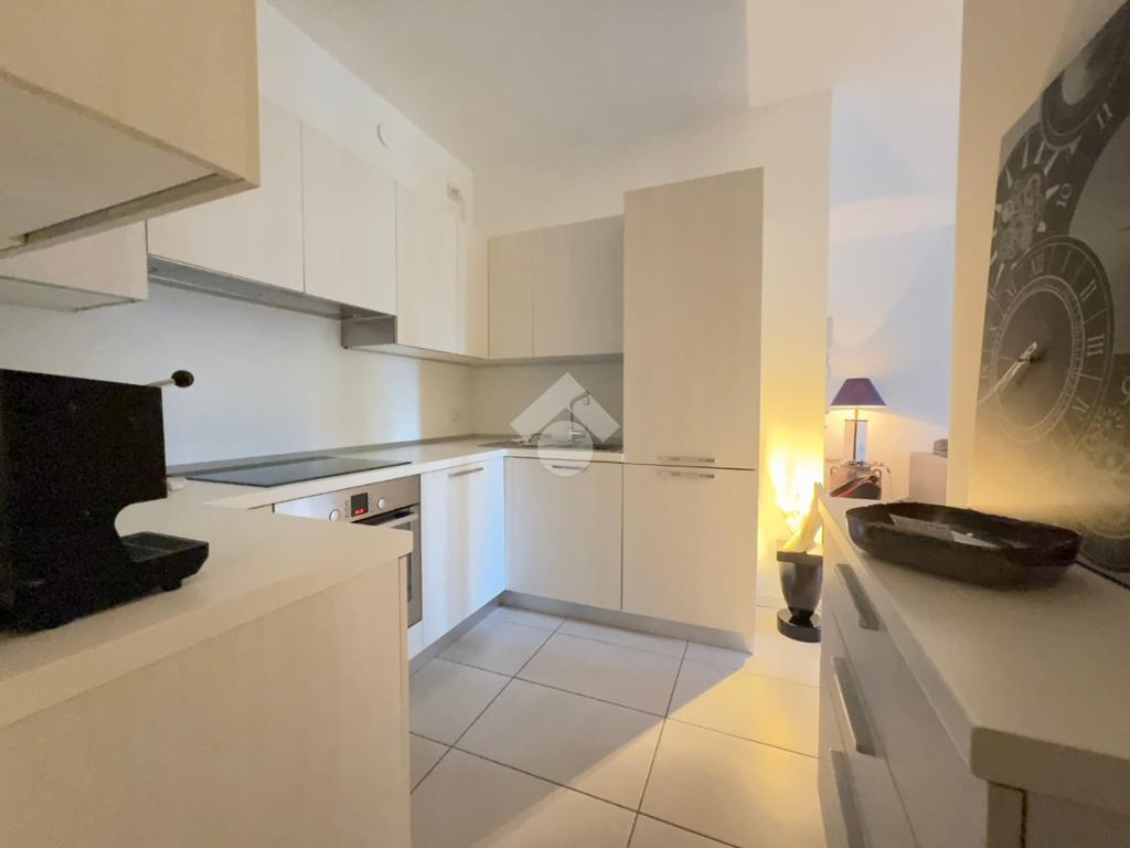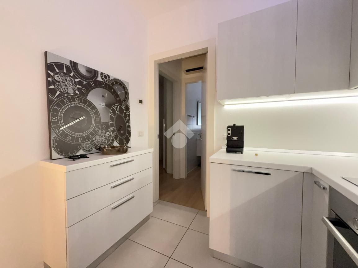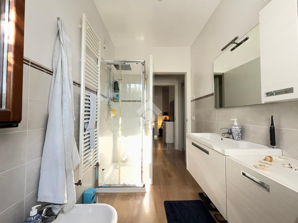 Le finiture sono curate: gres porcellanato nella zona giorno, parquet nella zona notte e nel bagno. Il comfort abitativo è garantito dal riscaldamento e raffrescamento a pavimento centralizzati, con la possibilità di utilizzare anche un condizionatore privato.