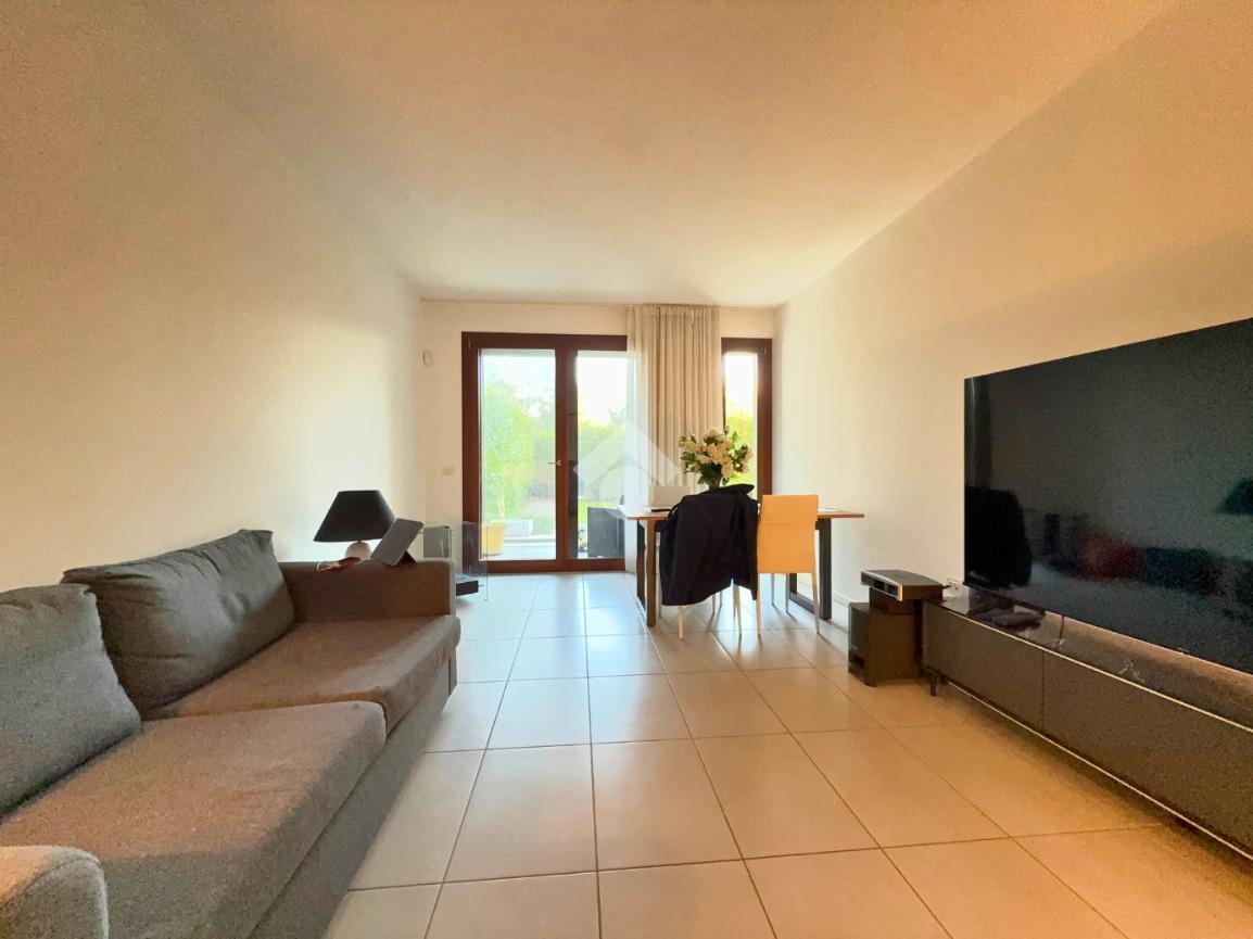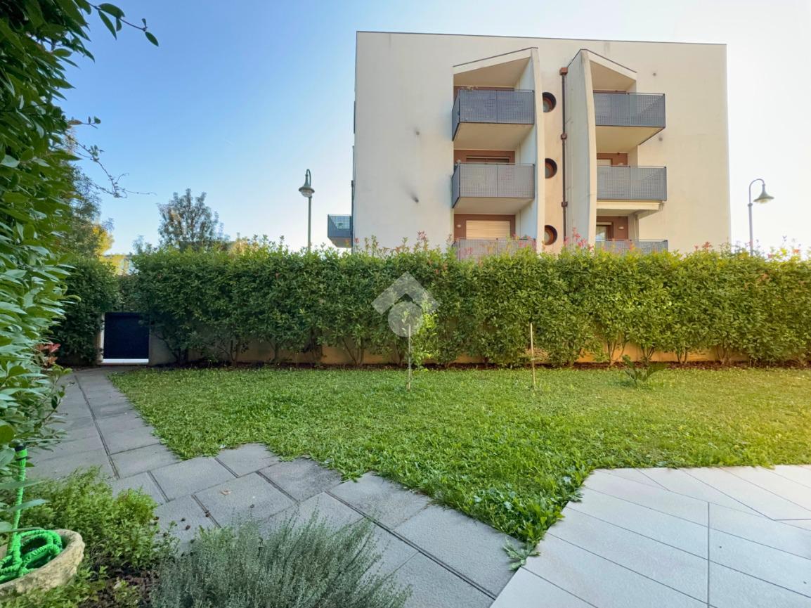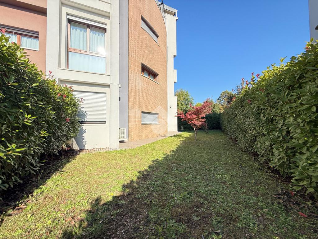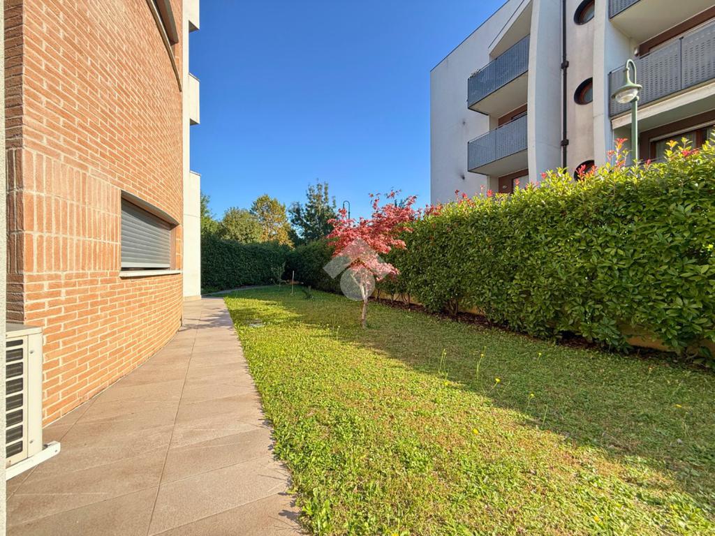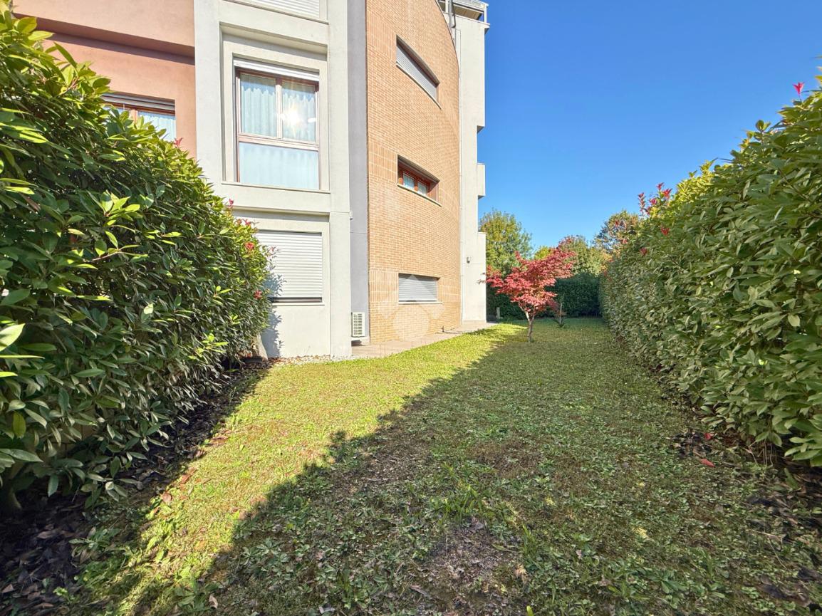 A Treviso, nella ricercata zona di Santa Maria del Sile, in prossimità del Parco Ducale, proponiamo in vendita un elegante mini appartamento al piano terra con ampio giardino privato di 180 mq, situato in una palazzina moderna edificata nel 2016, completa di ascensore.