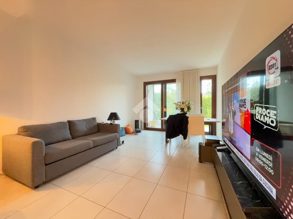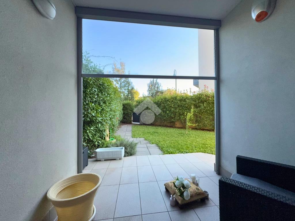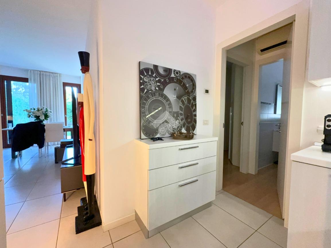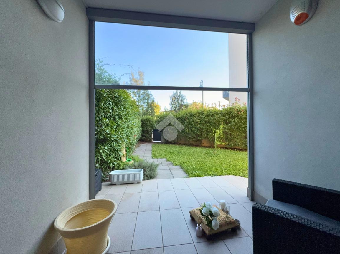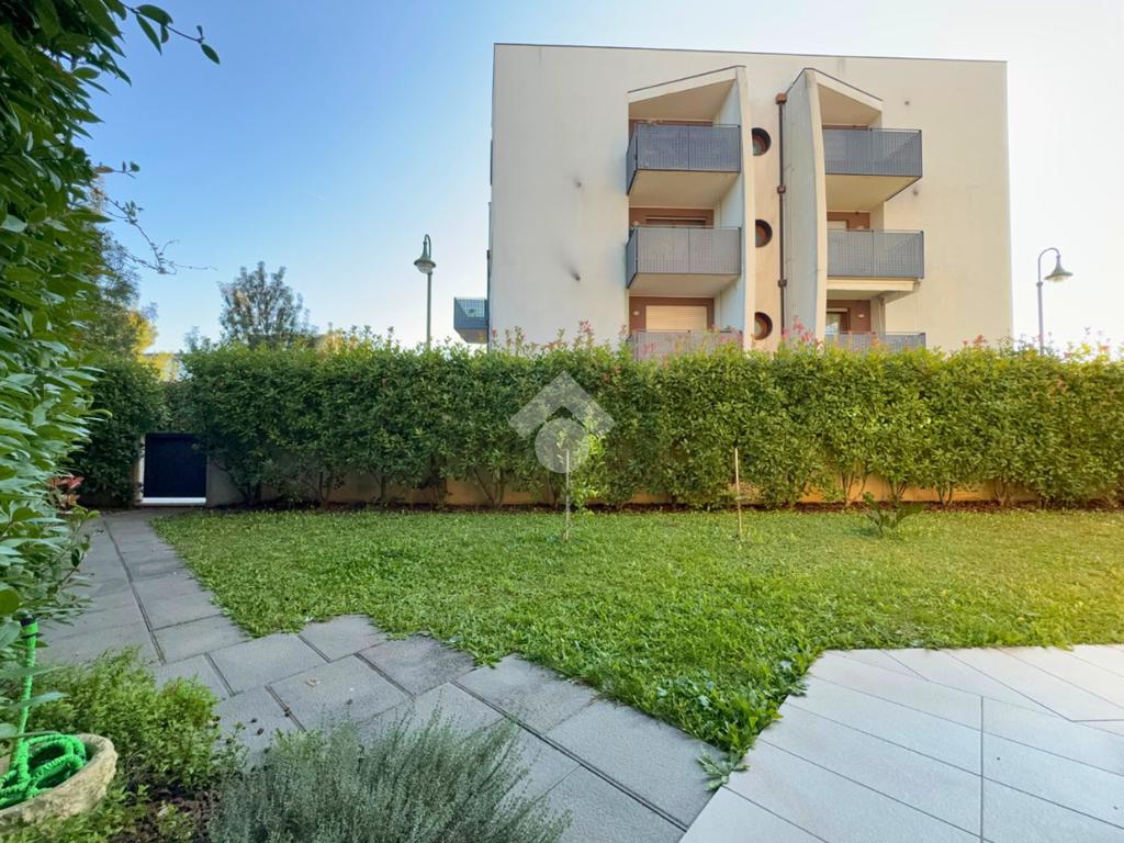 A Treviso, nella ricercata zona di Santa Maria del Sile, in prossimità del Parco Ducale, proponiamo in vendita un elegante mini appartamento al piano terra con ampio giardino privato di 180 mq, situato in una palazzina moderna edificata nel 2016, completa di ascensore.