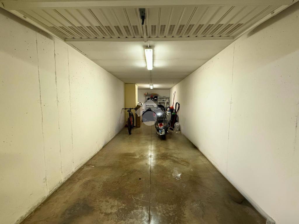 L’abitazione si apre su un accogliente ingresso che conduce al soggiorno con angolo cottura, mentre la zona notte ospita una spaziosa camera matrimoniale e un bagno finestrato con doccia. Al piano interrato è presente un comodo garage doppio di 28 mq.