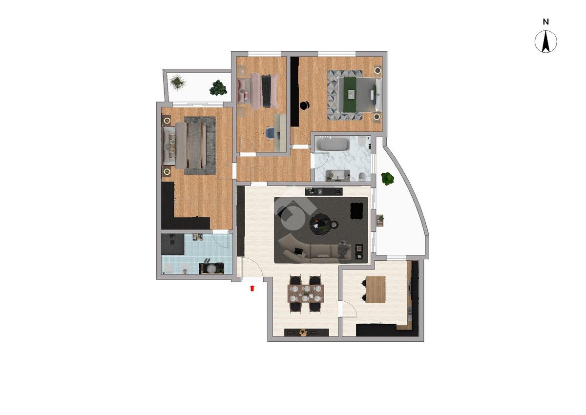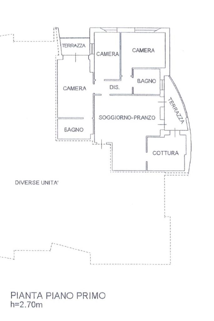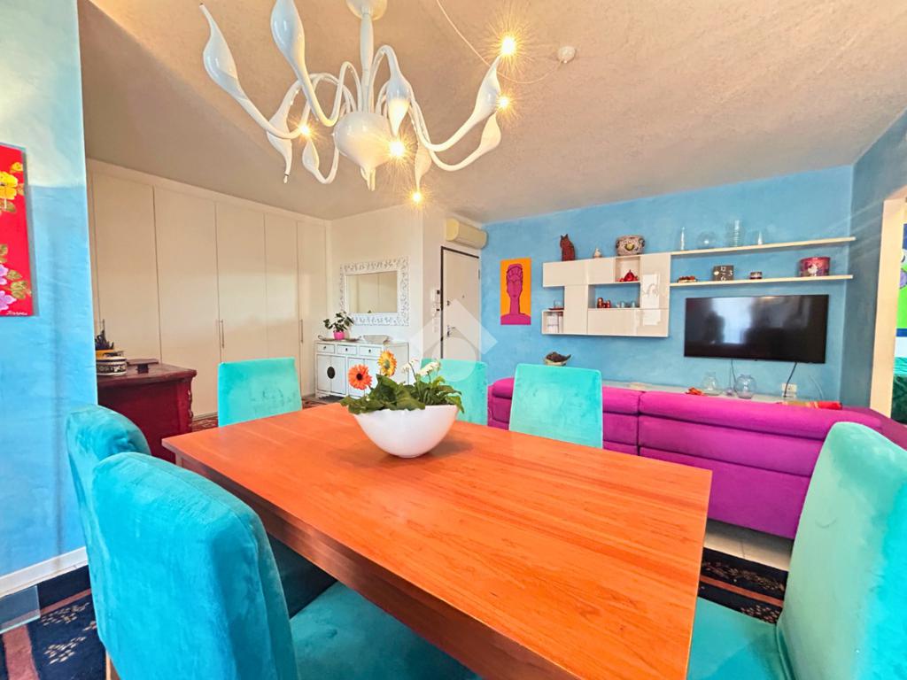 L'abitazione si apre su un ingresso con portoncino blindato che conduce a un soggiorno luminoso e a una cucina abitabile separata entrambi con accesso al terrazzo.