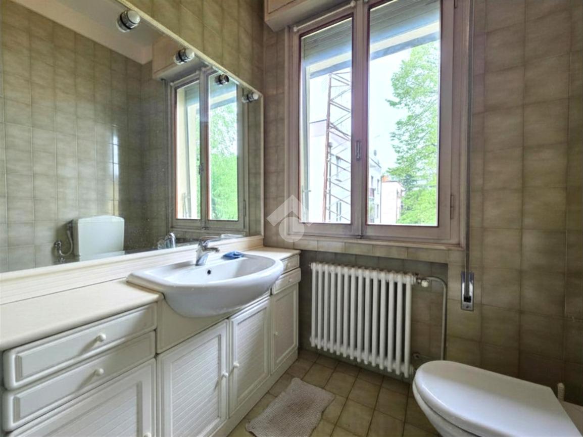 L’abitazione si apre su un ingresso che conduce al soggiorno e alla sala da pranzo con cucinino separato. La zona notte è rifinita in parquet e dispone di tre camere da letto, di cui due matrimoniali e una singola, un bagno, nel quale nel 2003 sono stati rifatti l’impianto idraulico e la doccia, e un pratico ripostiglio dove poter ricavare un secondo servizio. La proprietà dispone inoltre di tre terrazzi.