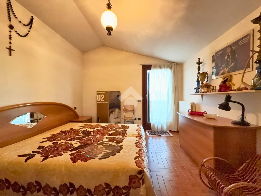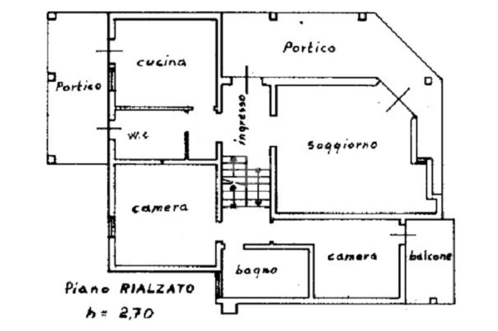 L’ingresso conduce alla zona giorno composta da cucina abitabile e bagno finestrato con doccia, soggiorno con camino a legna e accesso diretto al portico esterno. Al piano rialzato la zona notte comprende una camera matrimoniale, una camera singola e un bagno completo con vasca. Al piano superiore sono presenti una camera doppia con terrazzo abitabile e un’ulteriore stanza mansardata non abitabile, utilizzabile come locale di appoggio.