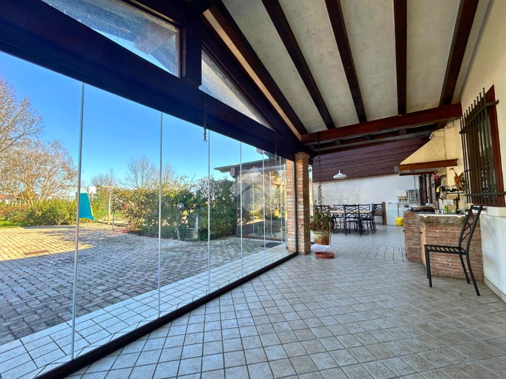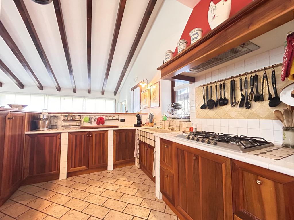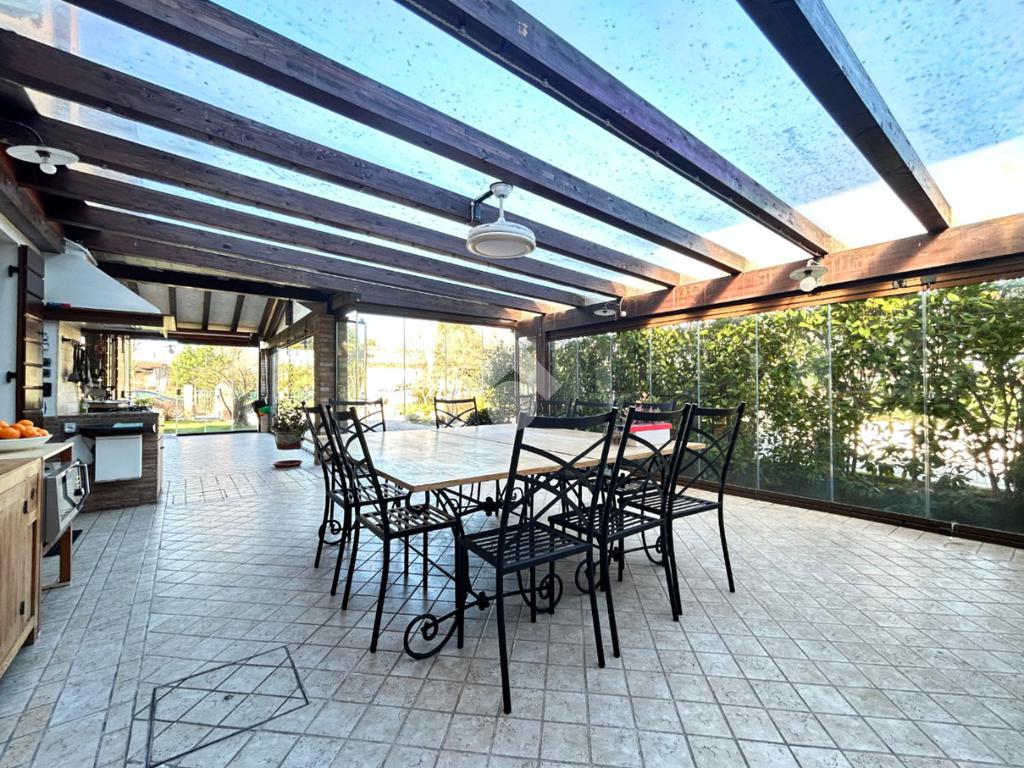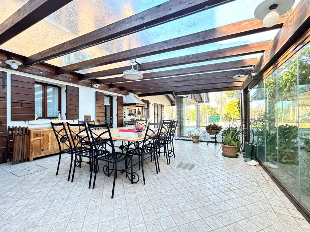 L’area esterna, caratterizzata dal generoso giardino privato completo di piscina, include un cancello elettrico e la presenza di un garage e posti auto. La proprietà gode di un'esposizione su tre lati (Nord, Est, Sud), garantendo una buona luminosità naturale durante l'intera giornata.