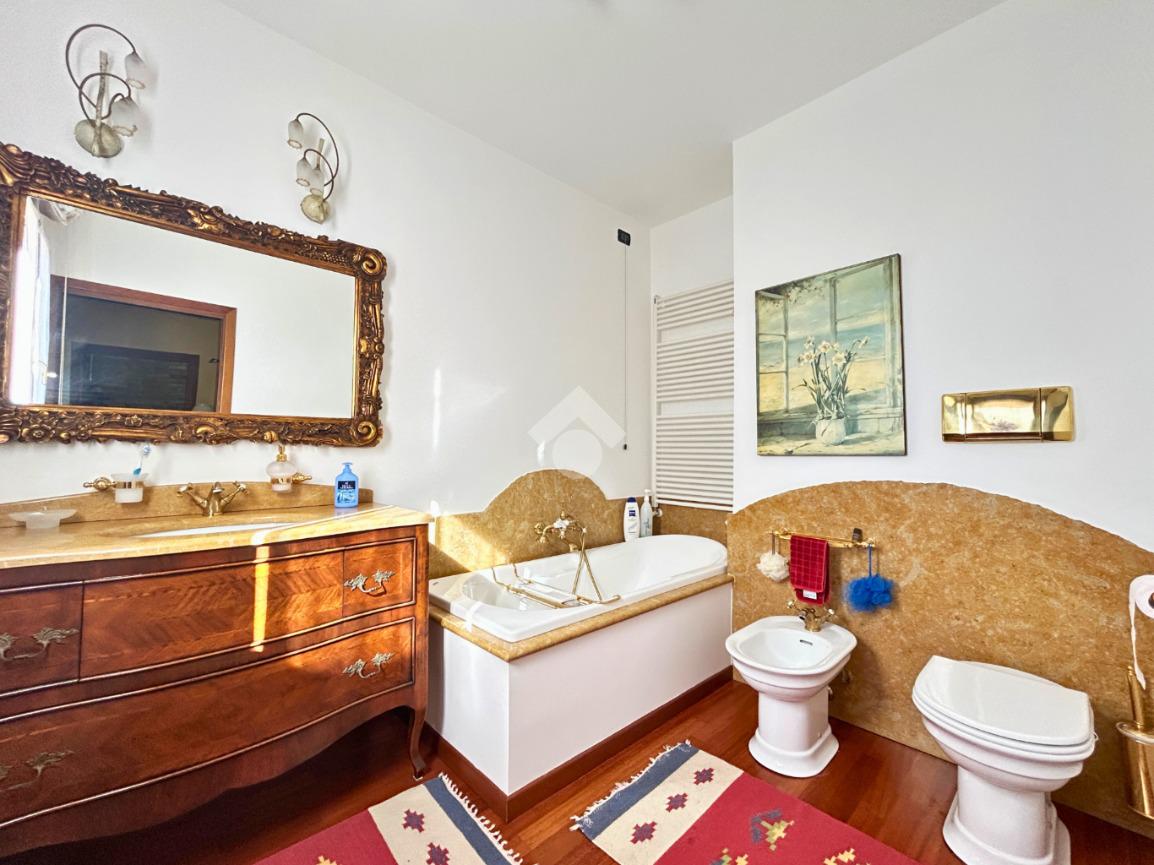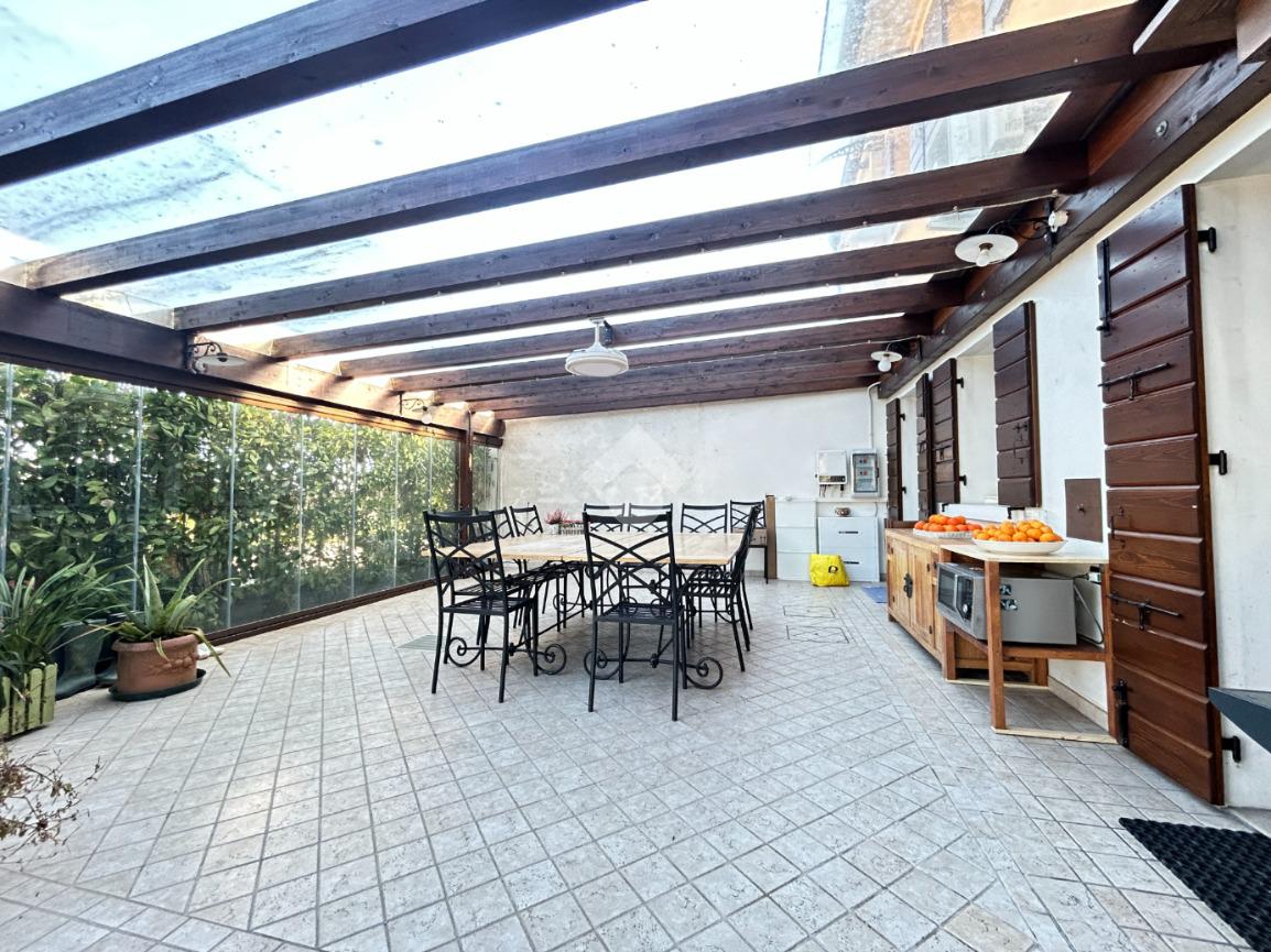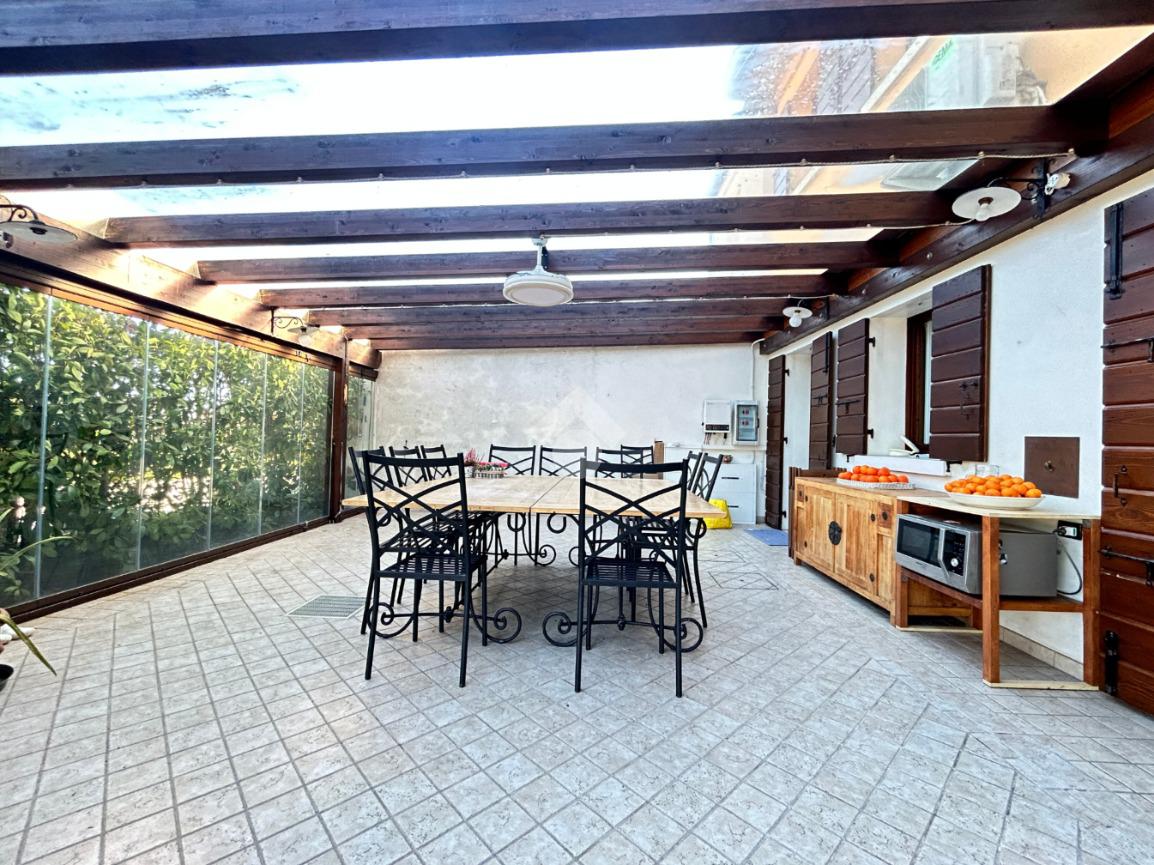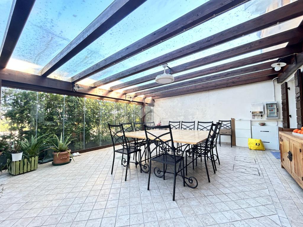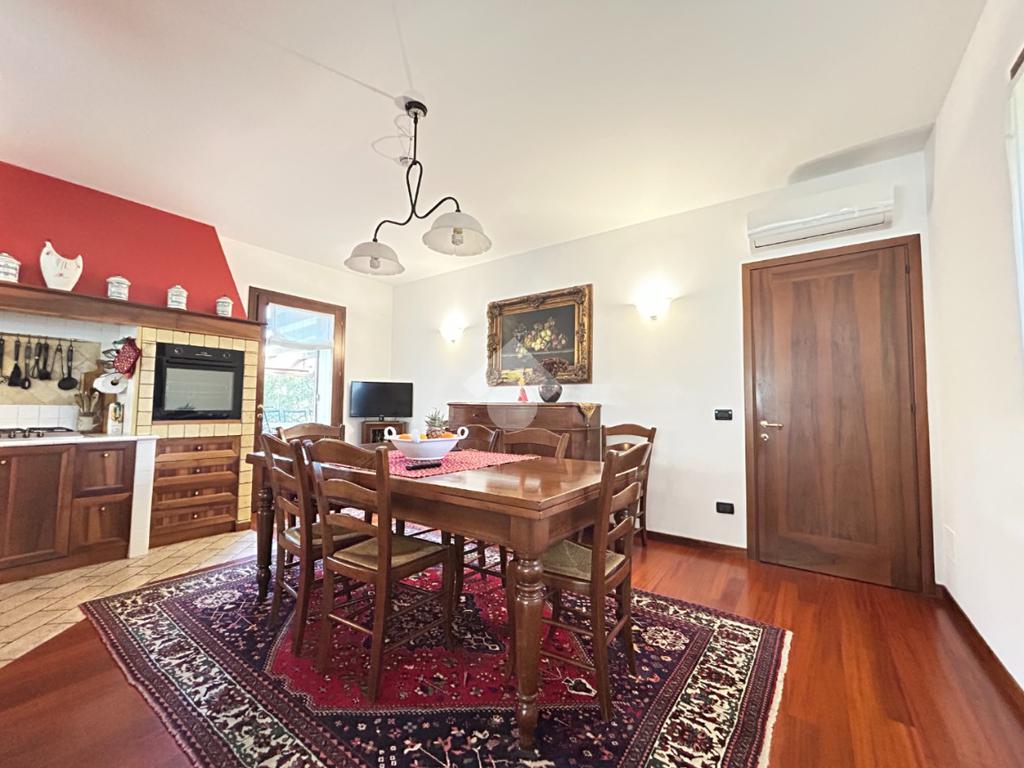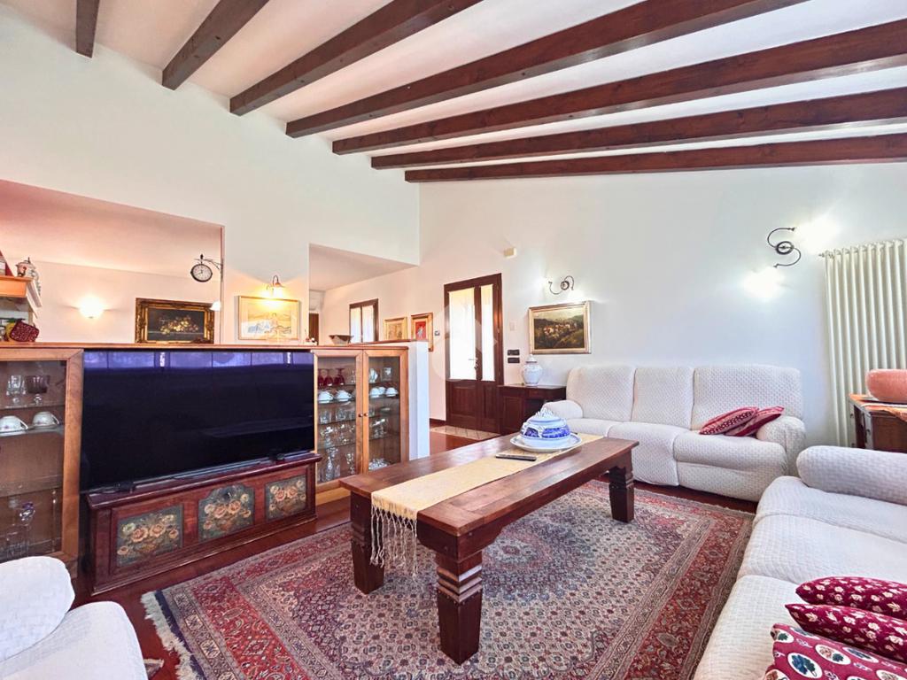 Per quanto riguarda le finiture, la zona giorno presenta pavimentazioni in legno e parti in grès, mentre per la zona notte è stato scelto il legno. Gli infissi interni sono realizzati in legno con vetrocamera. L'immobile è dotato di un sistema di riscaldamento autonomo a radiatori con caldaia a condensazione, quest'ultima recentemente rinnovata. L'efficienza energetica è supportata da un impianto fotovoltaico da 10 kW installato nel 2025.