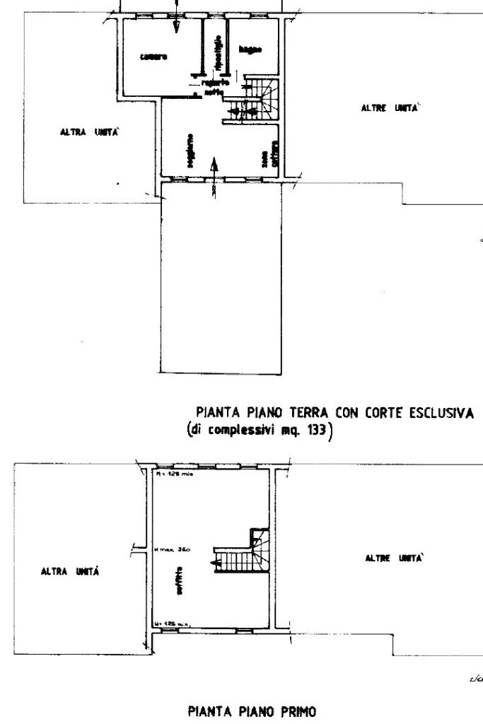 L’abitazione si sviluppa su due livelli fuori terra più un piano interrato con scoperto sul fronte e sul retro della proprietà di circa 130 mq.