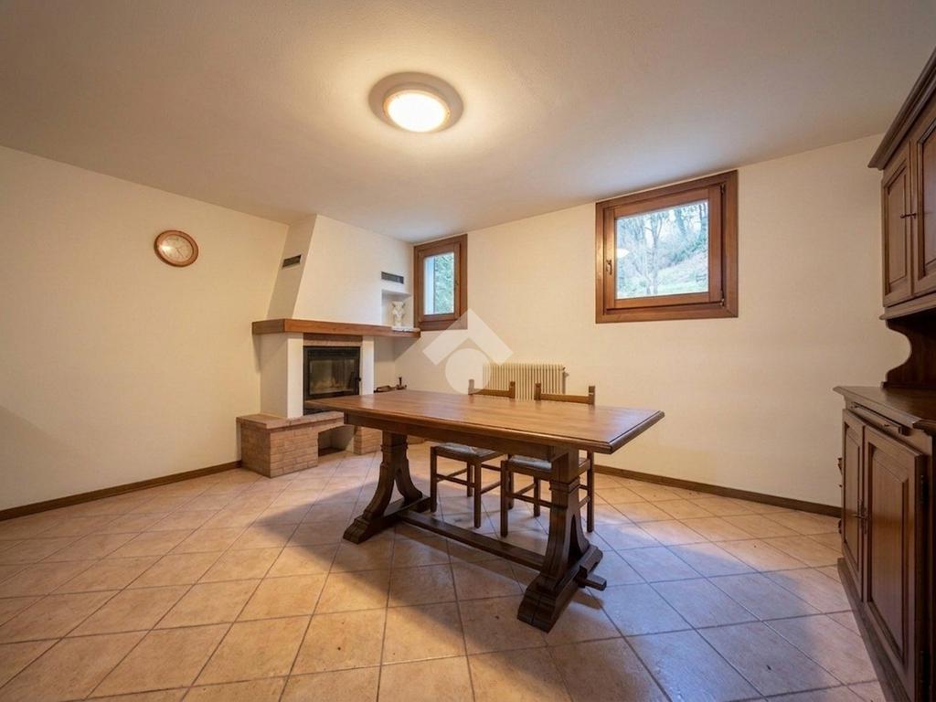 Nel piano interrato sono presenti una taverna dotata di caminetto e cucina, un ripostiglio e la zona lavanderia.